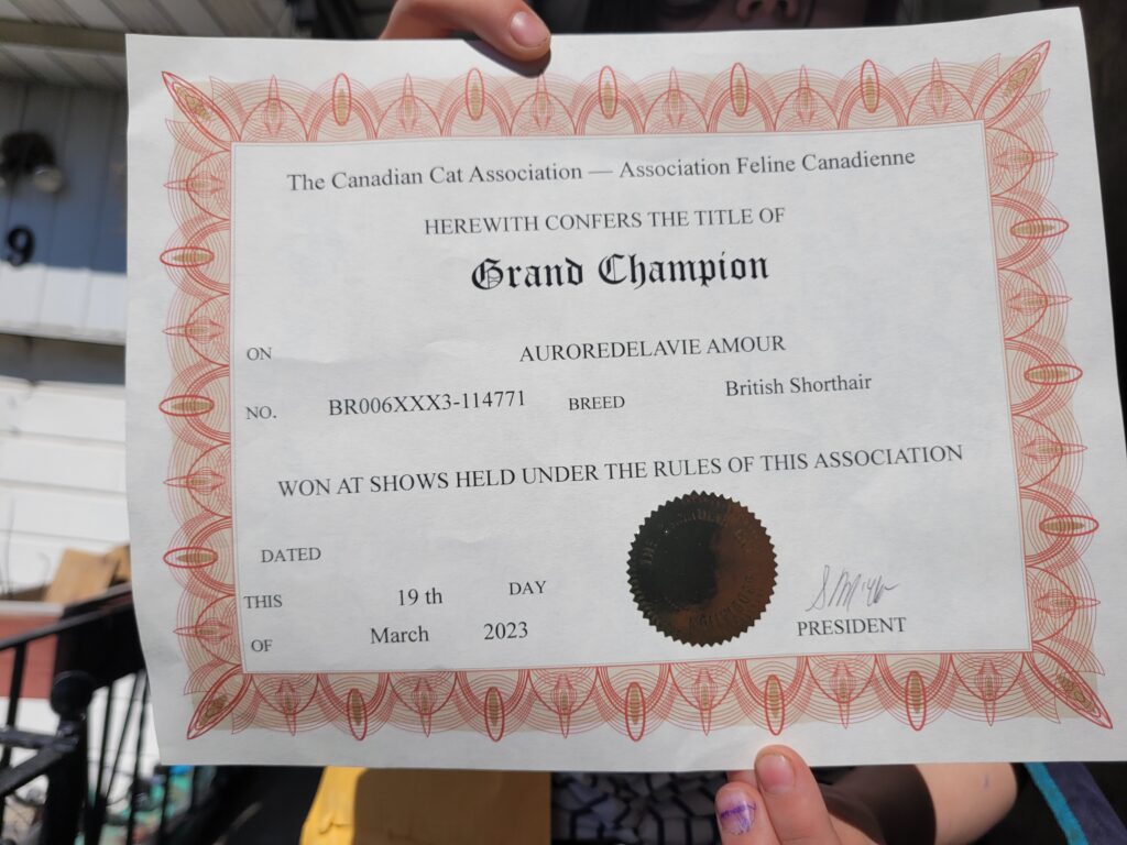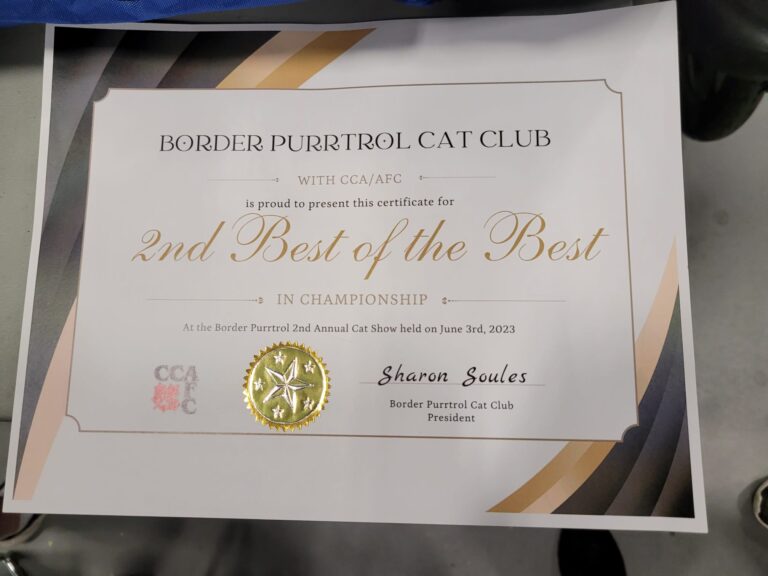 GALERY – Our Shows March 18 – 19 2023 / les 18 et 19 mars 2023, Hamilton, ON Results Official results can be found here April 22 – 23 2023 / les 22 et 23 avril 2023, National Cat Club, Lindsay ON Results Official results can be found here June 3 and 4 2023 / les 3 et 4 juin 2023, Border Purrtrol Cat Club, Fonthill ON Results Official results can be found here March 16, 17, 2024 / le 16, 17 mars 2024, Hamilton Cat Fanciers’ Club, Ancaster ON REsults Official results can be found here April 20, 21, 2024 / le 20, 21 avril 2024, National Cat Club, Lindsay, ON RESULTS Official results can be found here